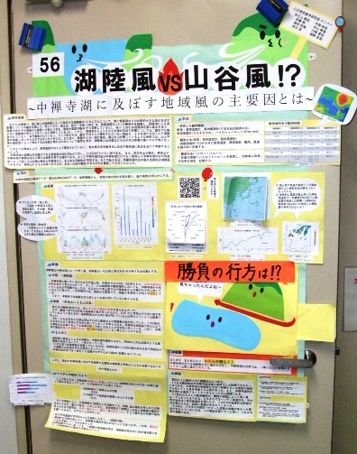 数多くの優れた研究発表が並ぶ中、4年生の小林克春君による発表「中禅寺湖における局地的な強風に関する研究」が、見事優秀賞を受賞しました。
